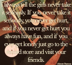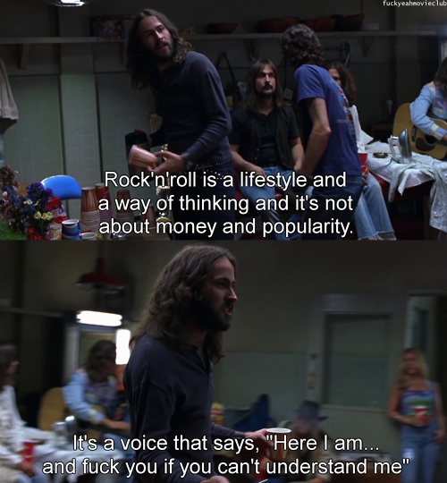 The coolest thing about this film? It’s semi autobiographical and loosely based on director Cameron Crowe’s experiences as a music journalist. I think that’s one of the reasons this film makes me so happy. It all sort of happened. That and the fact that it just shows there are so many other people who are completely and helplessly in love with music the way I am.